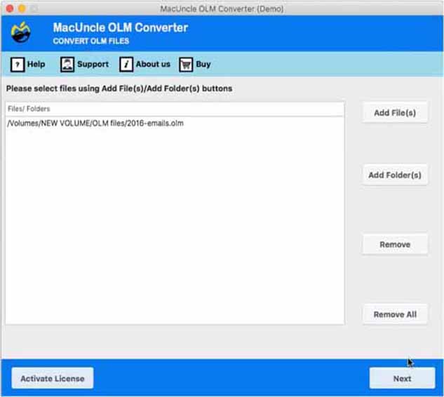 Start Mac OLM to PST Converter on your Mac Computer and select OLM file using Add File(s) or Add Folder(s).